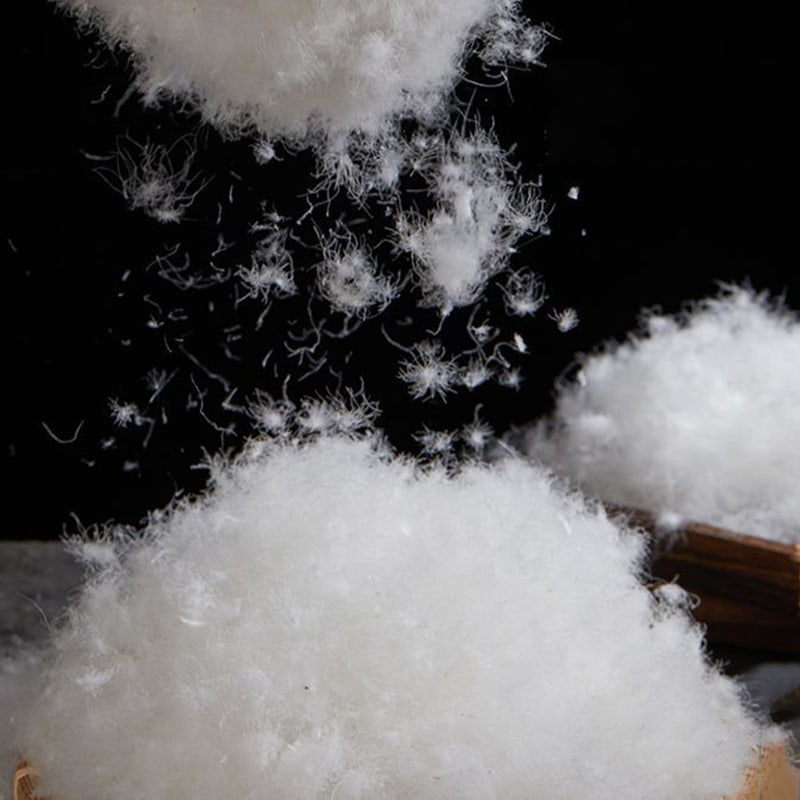 Натуральный пух, взятый из брюшка, шеи и нижней части крыльев высококачественных белых гусей, представляет собой трехмерную сгруппированную форму, похожую на цветущие тростниковые сережки, образуя золотое сечение с чешуйчатыми перьями. Каждое волокно гусиного пуха, являющееся редким волокном животного происхождения, покрыто миллионами микротреугольных пористых структур. Эти точные поры подобны интеллектуальным блокам контроля температуры, которые можно регулировать на микронном уровне в зависимости от изменений температуры окружающей среды для создания сети динамического цикла контроля температуры. Когда теплое дыхание, естественным образом излучаемое человеческим телом, контактирует с нижним слоем, пористая структура немедленно активирует механизм поглощения тепла и образует многомерный теплоизоляционный защитный слой, эффективно блокируя путь проникновения внешнего холодного воздуха и создавая комфорт при любой погоде и постоянной температуре.